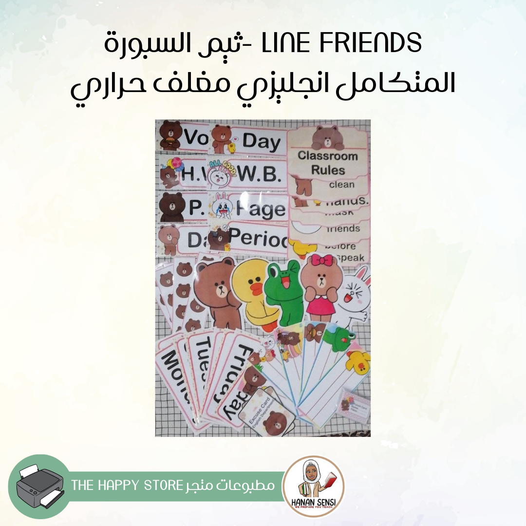 Line friends -ثيم السبورة المتكامل انجليزي مغلف حراري