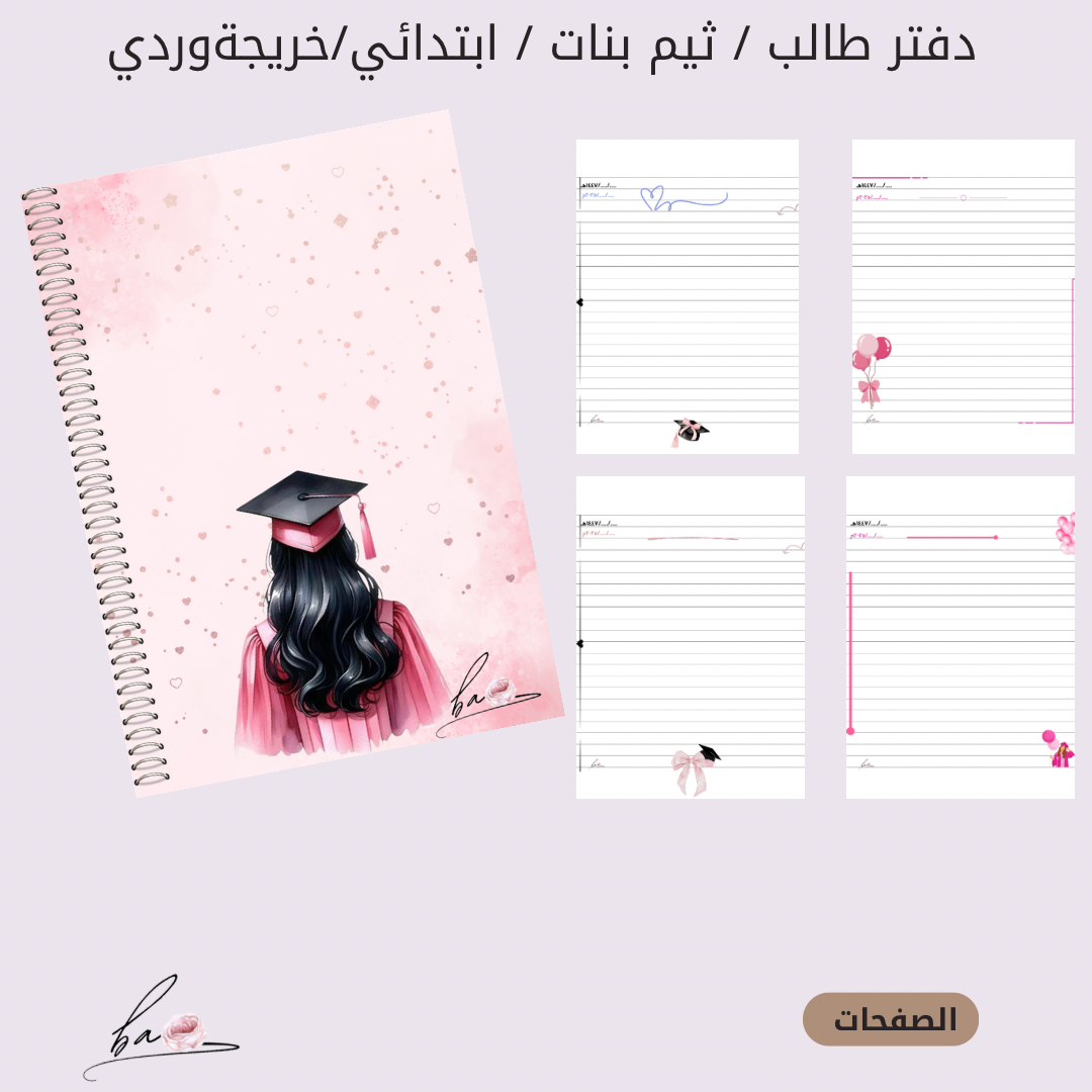 دفتر طالب - بنات ابتدائي -ثيم خريجة وردي